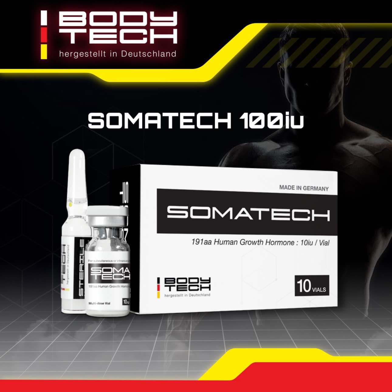 Ngoài ra, HGH có vai trò thúc đẩy cơ thể xây dựng cơ bắp, tái tạo mô cơ, cải thiện chức năng não và gia tăng ham muốn tình dục. Bodytech Somatech là một hoạt chất HGH bào chế dựa trên công nghệ DNA tái tổ hợp, hoạt động tương tự như các HGH được tuyến yên tiết ra tự nhiên trong cơ thể.